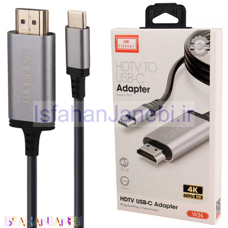 کابل تبدیل Type-C به HDMI ارلدام ET-W34 طول 2 متر